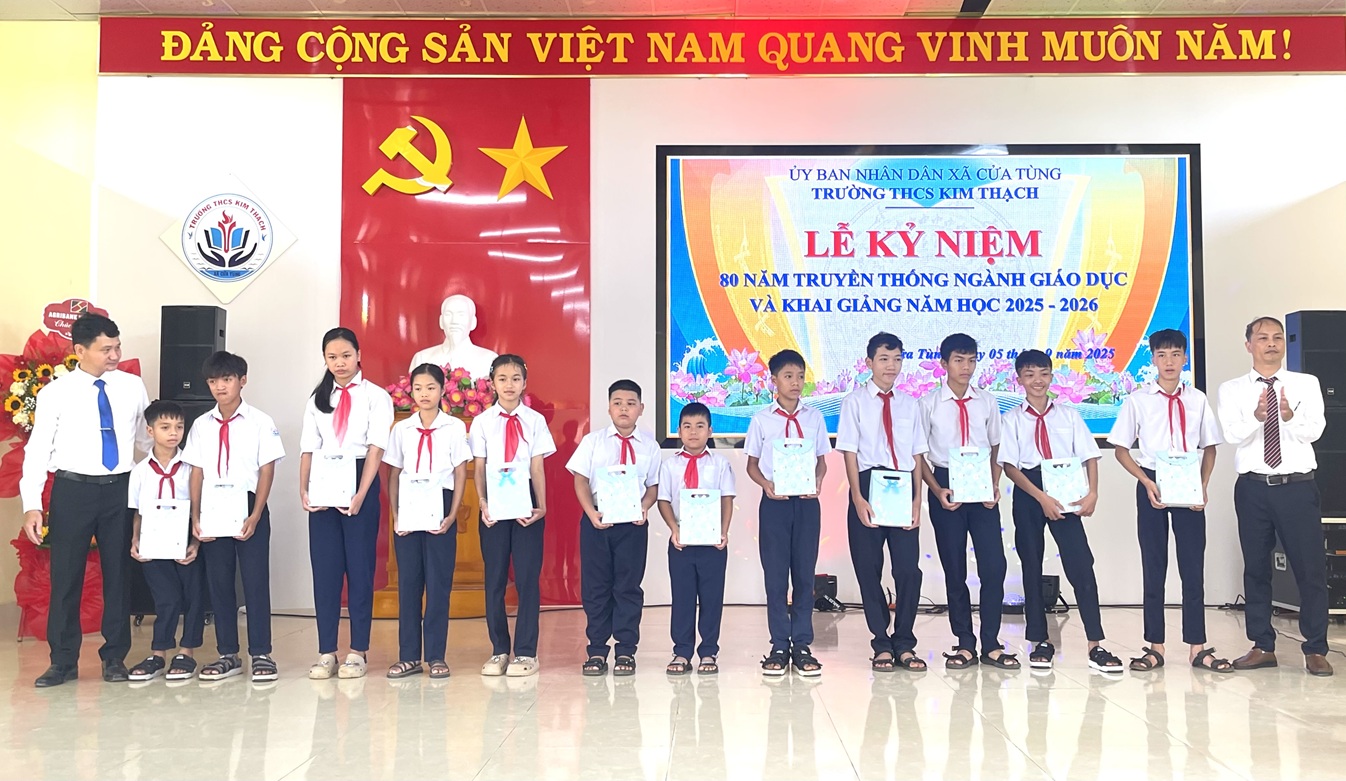 Năm học mới 2025- 2026, Trường THCS Kim Thạch, xã Cửa Tùng có tổng số 411 học sinh thuộc 4 khối lớp, trong đó 108 học sinh đầu cấp. Nhà trường đã làm tốt công tác chuẩn bị, tổ chức lễ khai giảng. Từ đó tạo không khí vui tươi, phấn khởi chào đón toàn thể học sinh vào ngày tựu trường.