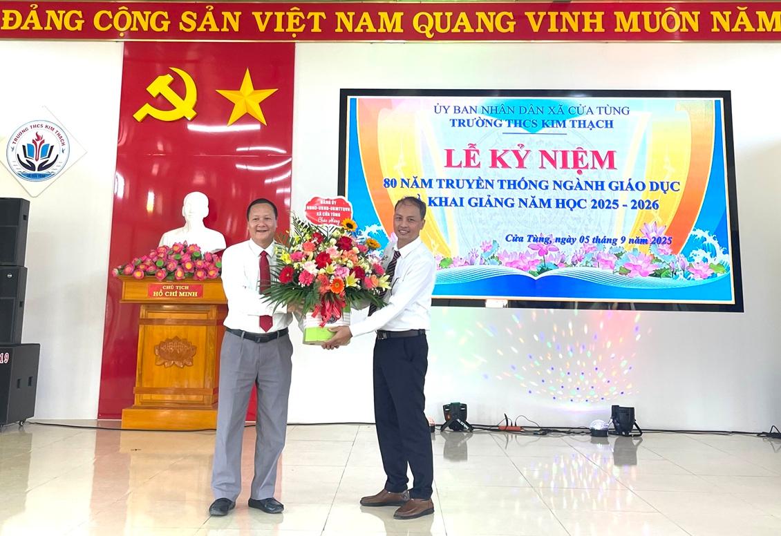 Ngày 5/9/2025, Trường THCS Kim Thạch, xã Cửa Tùng tổ chức lễ khai giảng năm học 2025 - 2026. Tham dự buổi lễ có đồng chí Thái Văn Thành - Bí thư Đảng ủy, Chủ tịch HĐND xã Cửa Tùng.