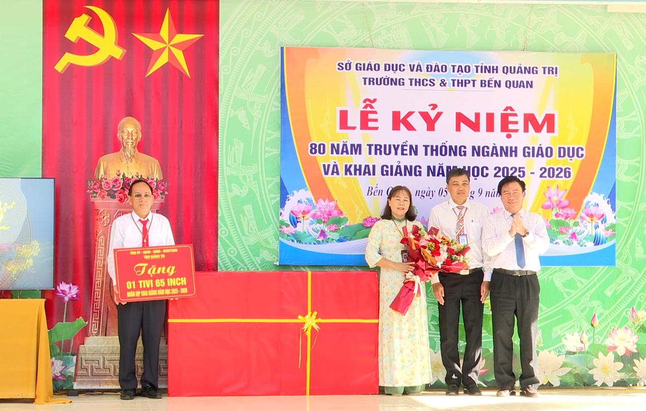 Nhân dịp khai giảng, Tỉnh uỷ, HĐND, UBND, Ủy ban MTTQ Việt Nam tỉnh Quảng Trị đã trao tặng nhà trường một tivi 65 inch. Món quà không chỉ là sự quan tâm thiết thực đến sự nghiệp giáo dục mà còn là nguồn động viên lớn đối với tập thể cán bộ, giáo viên và học sinh của trường trong việc đổi mới phương pháp dạy và học, ứng dụng công nghệ thông tin vào giảng dạy.
