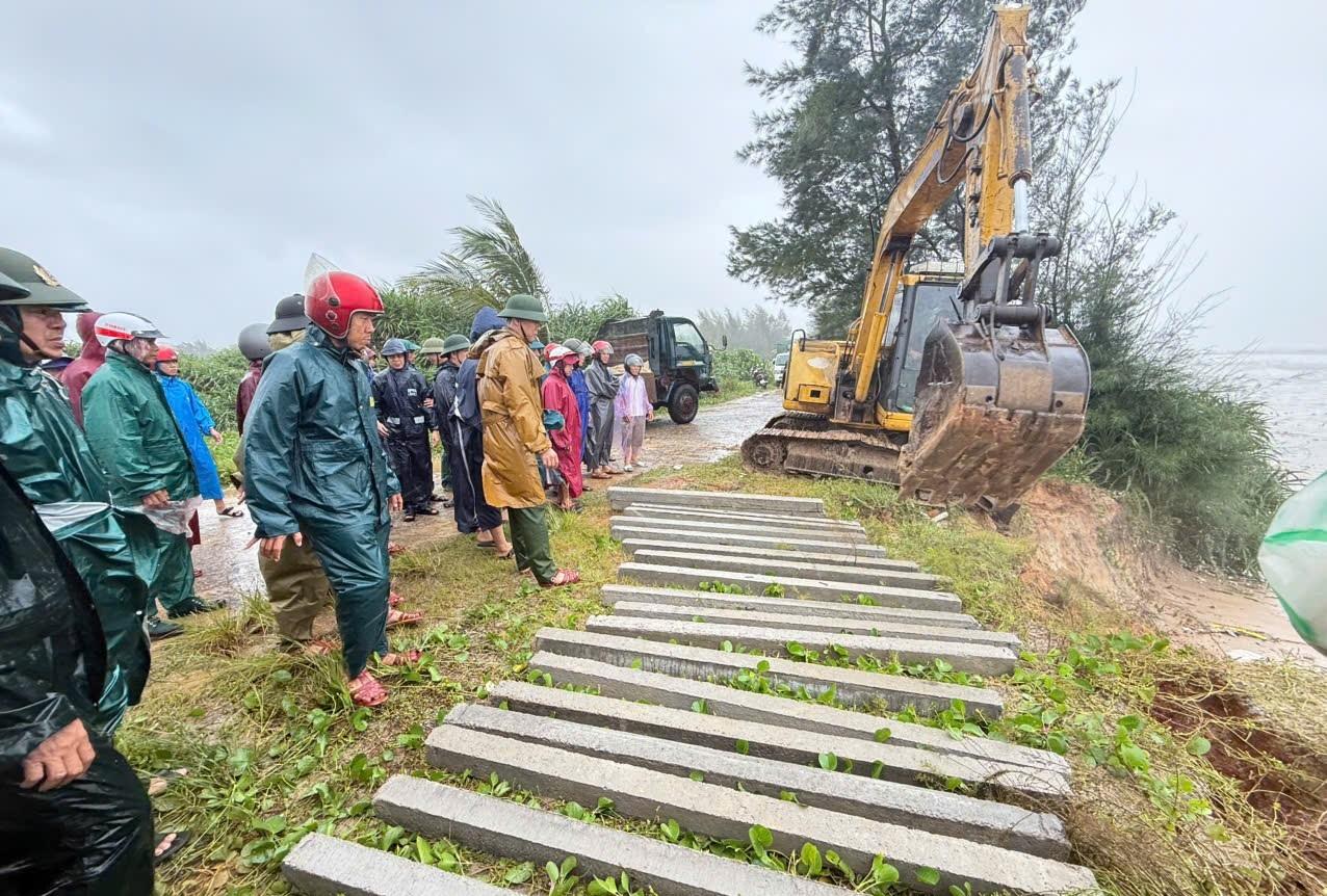 Đặc biệt có 3 điểm sạt lỡ đê biển tại thôn Thái Lai với chiều dài khoảng 20m. Riêng các điểm sạt lỡ này, từ trưa 28/9 UBND xã đã huy động hơn 120 người gồm lực lượng công an, quân sự, biên phòng, dân quân tự vệ; huy động 2 máy múc, 1 máy đào, sử dụng hơn 30 rọ thép, 30 khối đá, hơn 1.750 bao cát, 100 trụ bê tông làm cọc nhồi, cùng các vật tư phương tiện khác tích cực phối hợp cùng chính quyền thôn Thái Lai khẩn trương có mặt và xử lý sự cố. Đến 16h20 cùng ngày, công tác khắc phục các điểm sạt lỡ đã hoàn tất đảm bảo an toàn lực lượng và phương.