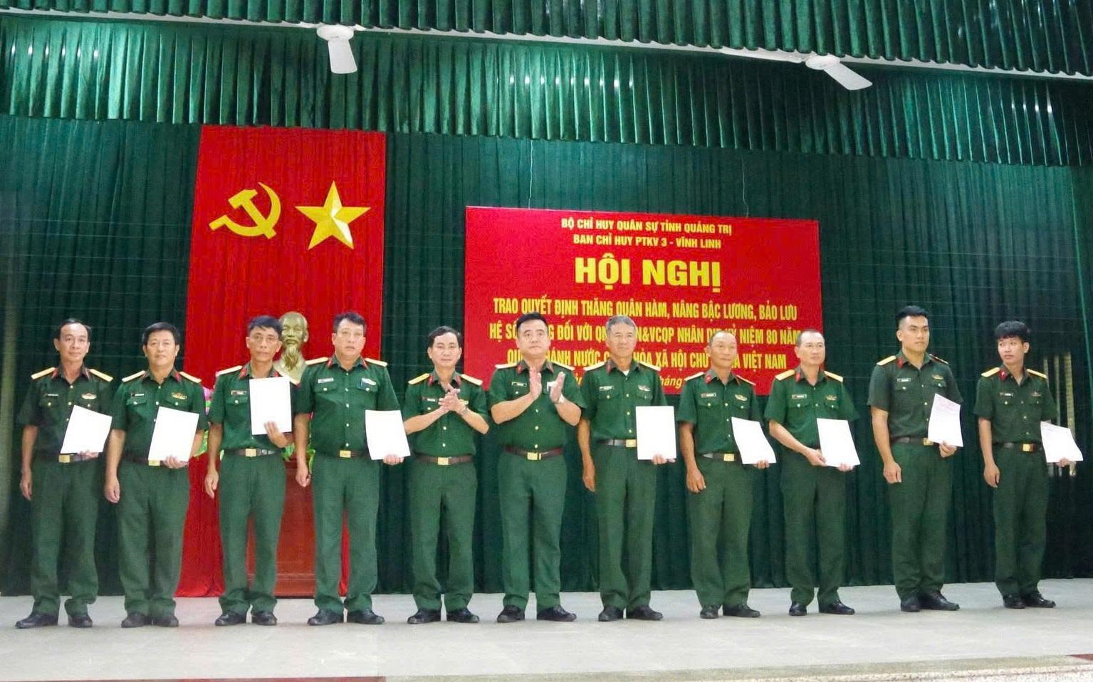 Thực hiện các Quyết định của Bộ Tư lệnh Quân khu, đợt này Ban Chỉ huy PTKV3 - Vĩnh Linh có 6 đồng chí QNCN được thăng quân hàm Thượng tá; 21 đồng chí được nâng bậc lương, bảo lưu hệ số lương nhân kỷ niệm 80 Quốc khánh nước Cộng hòa xã hội Chủ nghĩa Việt Nam.