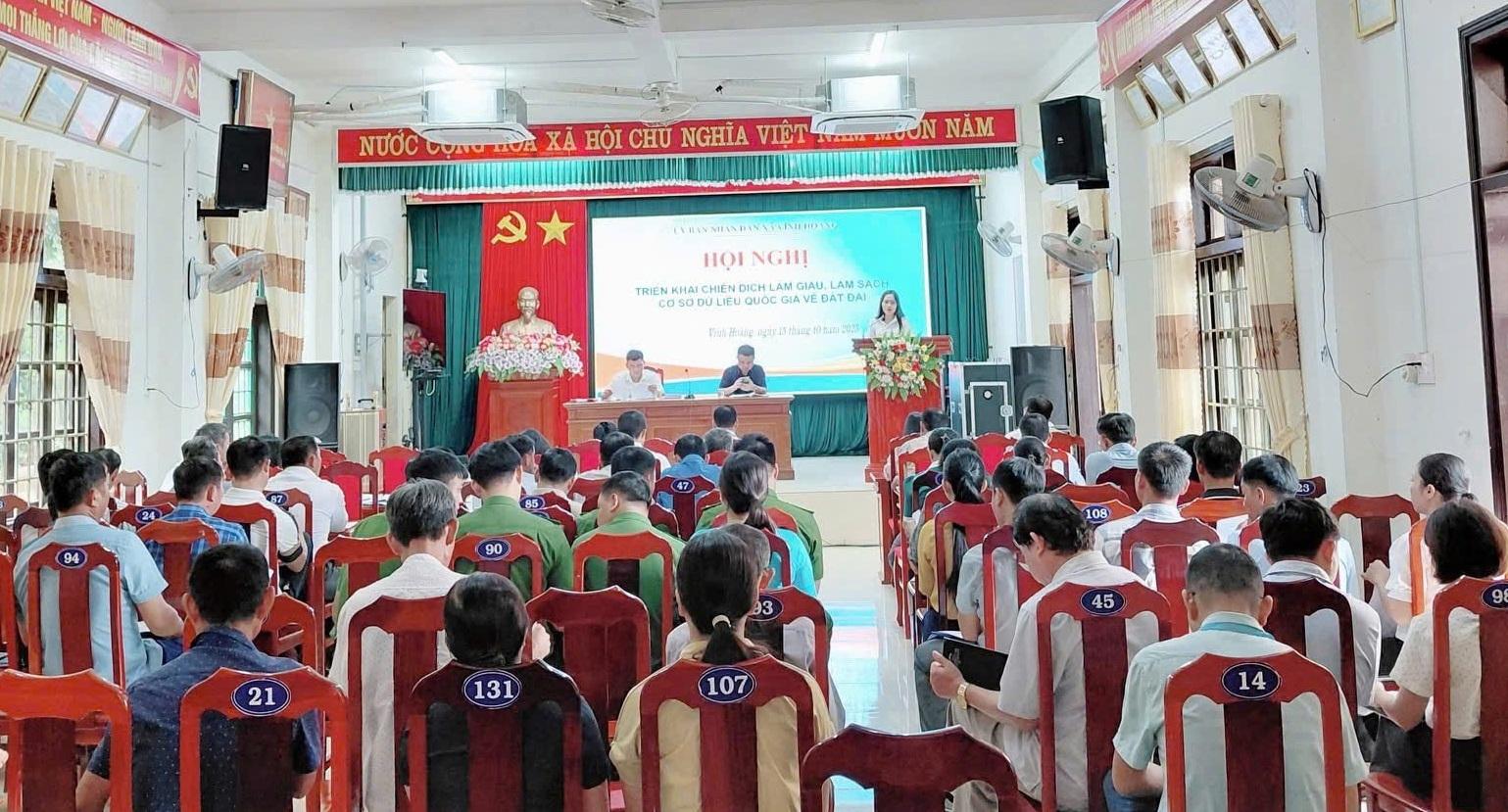 Ngày 15/10/2025, UBND xã Vĩnh Hoàng đã tổ chức hội nghị triển khai công tác làm giàu, làm sạch cơ sở dữ liệu quốc gia về đất đai trên địa bàn xã.