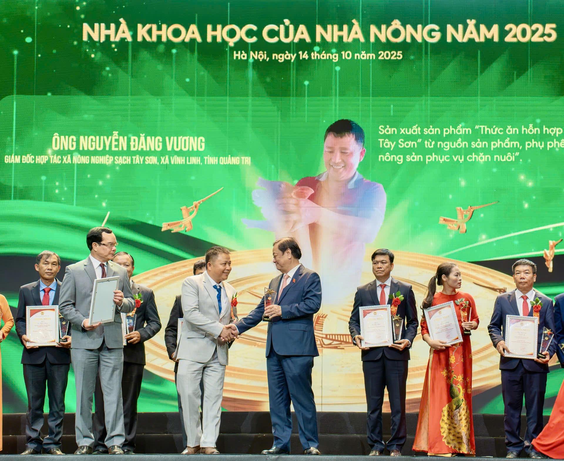 Tại chương trình, 95 cá nhân được vinh danh, gồm 63 “Nông dân Việt Nam xuất sắc” và 32 “Nhà khoa học của nhà nông”. Trong đó, xã Vĩnh Linh có 1 nông dân được tôn vinh, trao danh hiệu “Nhà khoa học của nhà nông” là ông Nguyễn Đăng Vương hiện là Giám đốc Hợp tác xã Nông nghiệp sạch Tây Sơn với giải pháp “Biến rác thải thành tài nguyên, biến phụ phế phẩm nông nghiệp thành thức ăn hỗn hợp và phân bón hữu cơ vi sinh”.