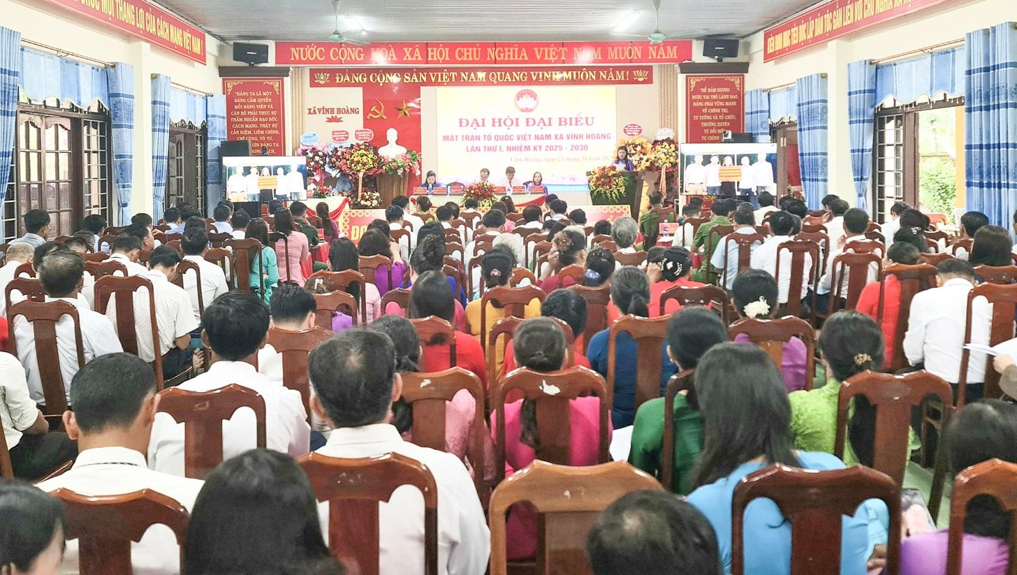 Ngày 21/10/2025, MTTQ Việt Nam xã Vĩnh Hoàng đã tổ chức Đại hội đại biểu lần thứ I, nhiệm kỳ 2025- 2030 với sự tham gia của 119 đại biểu chính thức, đại diện cho các tầng lớp Nhân dân, thành phần xã hội toàn xã.