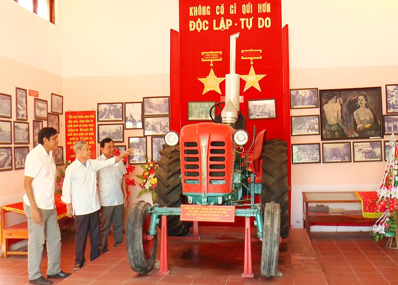 Chiếc máy cày Bác Hồ tặng cho cán bộ và Nhân dân xã Vĩnh Kim (nay là xã Kim Thạch) được trưng bày ở nhà truyền thống.