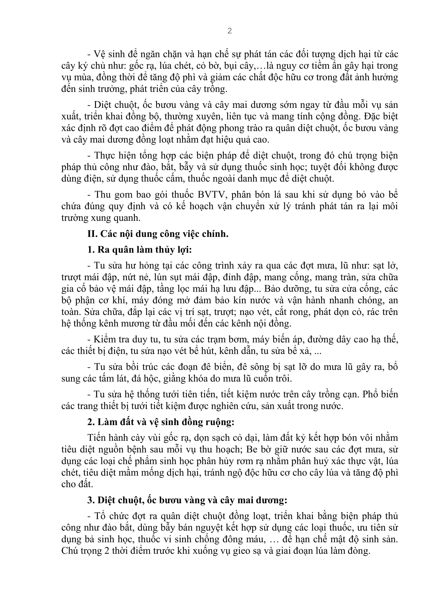 Kế hoạch tổ chức ra quân làm thủy lợi, vệ sinh đồng ruộng, diệt chuột, ốc bươu vàng và cây mai dương phục vụ sản xuất năm 2023