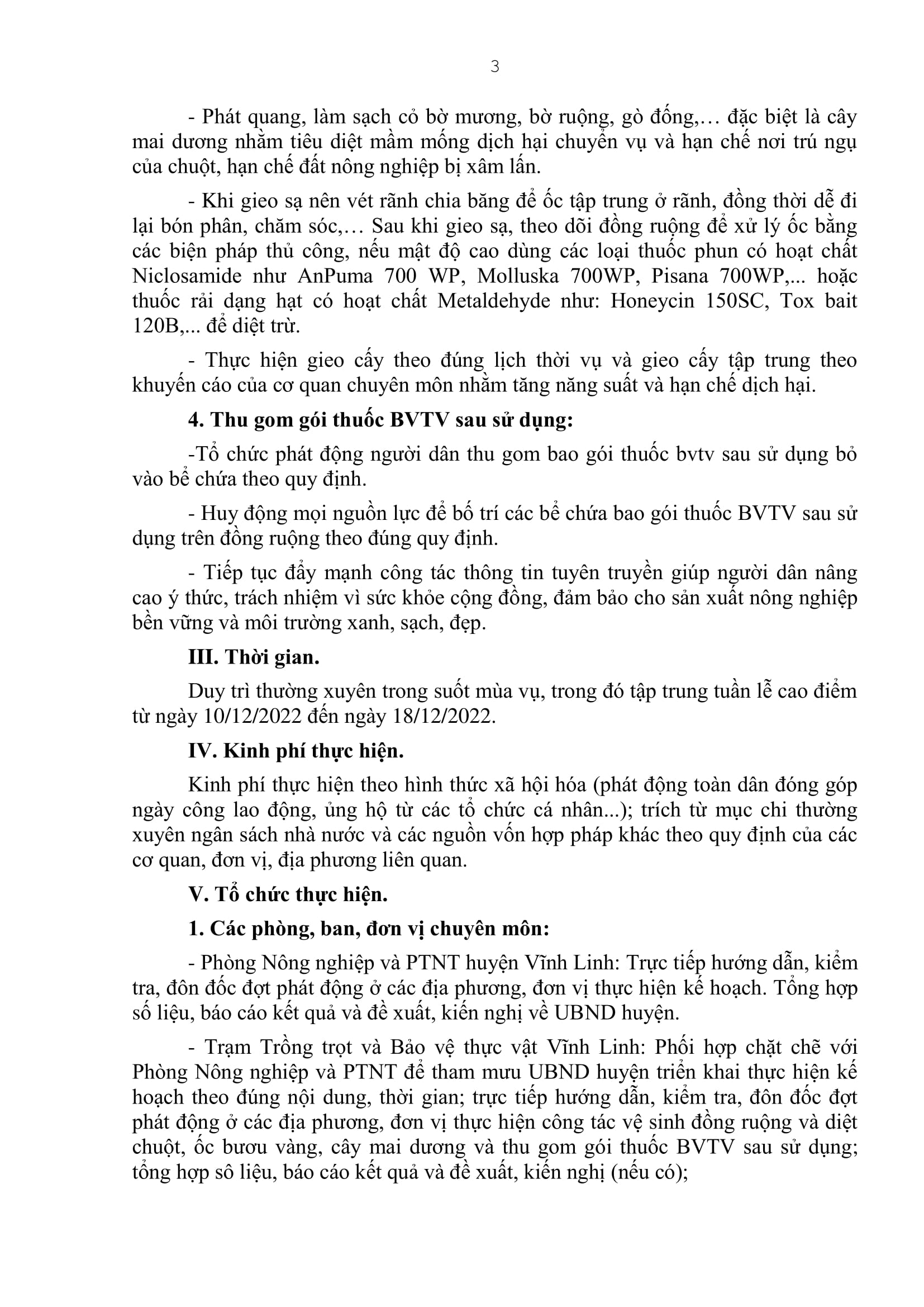 Ngày 8/12/2022, UBND huyện Vĩnh Linh xây dựng Kế hoạch tổ chức ra quân làm thủy lợi, vệ sinh đồng ruộng, diệt chuột, ốc bươu vàng và cây mai dương phục vụ sản xuất năm 2023.
