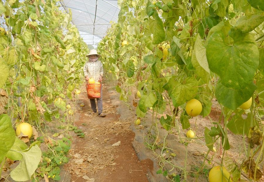 Mô hình trồng dưa trong nhà màng ở xã Trung Nam.