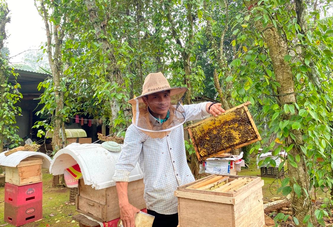 Theo tính toán của ông Tài, bình quân mỗi đàn ong thu được 7 lít mật/năm, với giá bán 600 ngàn đồng/lít, gia đình ông có nguồn lợi nhuận khoảng 200 triệu đồng/năm.