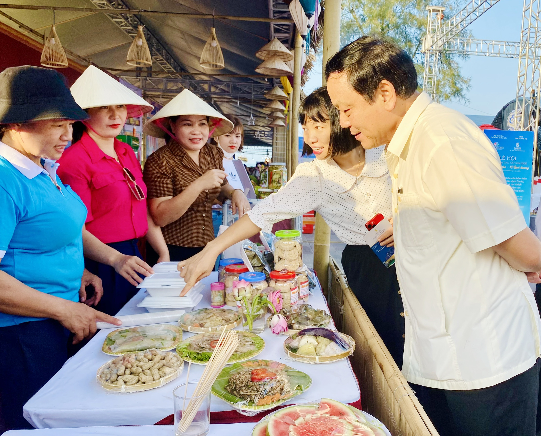 Tham gia lễ hội, huyện Vĩnh Linh đã giới thiệu đến du khách bốn phương những món ăn: Gỏi Nuốt Hoa Bần, Bánh Đúc Rau câu, Cháo bột lọc rau Mứt hải sản, Thấu mít Vĩnh Hoàng, Bánh xèo làng Trạng, Bánh tu huýt, Sắn đầm Vĩnh Tú, Dưa hấu Vĩnh Tú, Bánh in, Bánh ít lá gai Thủy Trung. Đây là những món ăn truyền thống, được chế biến một cách dân dã như chính sự giản dị, mộc mạc của con người nơi đây. Cũng chính vì sự không cầu kỳ này, mà gian hàng ẩm thực của địa phương đã thu hút khá đông thực khách đến tham quan, thưởng thức.
