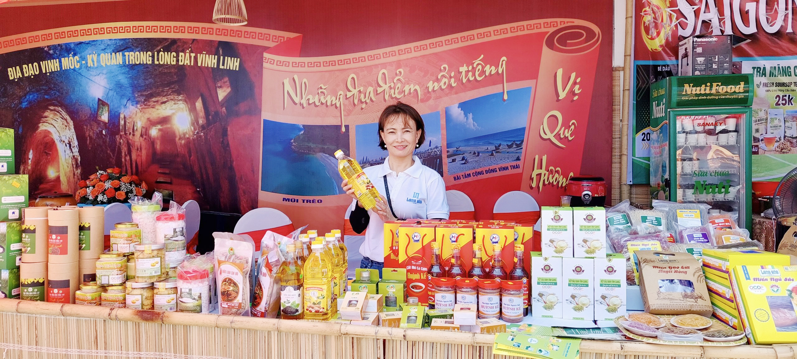 Huyện Vĩnh Linh còn trưng bày, giới thiệu các sản phẩm OCCOP tiêu biểu: Hồ Tiêu đỏ; Dầu lạc nguyên chất Làng An; Miến Ngũ sắc Loan Hảo; Bánh quy tinh bột ngô, tinh bột nghệ Hùng Dung; Bột đậu xanh Vĩnh Giang; Nấm Linh chi; Nước mắm Huỳnh Kế; Tinh bột sắn dây Phúc khuyên; Mật ong HTX Nông sản xanh Vĩnh Hòa.