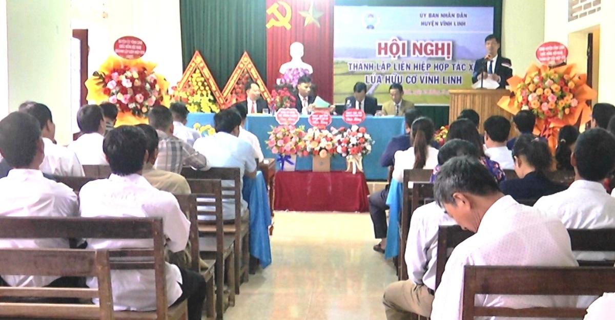 Ngày 24/10/2023, UBND huyện Vĩnh Linh tổ chức hội nghị thành lập Liên hiệp HTX Lúa hữu cơ Vĩnh Linh với sự tham gia của 881 thành viên thuộc 4 HTX, gồm: Đức Xá, Thuỷ Ba Đông (xã Vĩnh Thủy); Thượng Hòa (xã Vĩnh Long); Đặng Xá (xã Vĩnh Lâm). Tham dự hội nghị có Bí thư Huyện ủy Trần Nhật Quang.