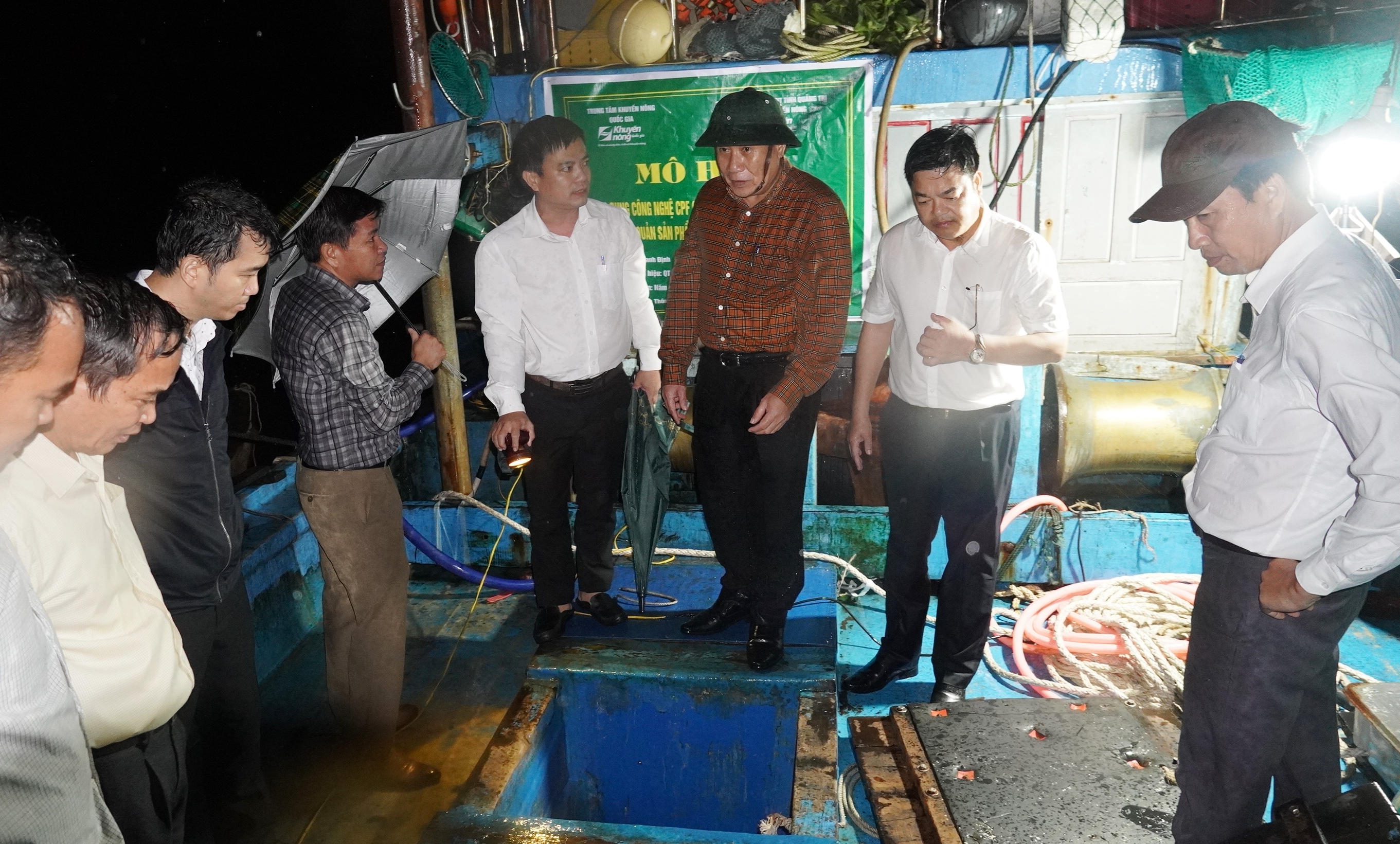 Đoàn cũng đến kiểm tra mô hình ứng dụng công nghệ CPF trong bảo quản sản phẩm trên tàu khai thác hải sản xa bờ tại xã Gio Việt, huyện Gio Linh do Trung tâm Khuyến nông Quảng Trị triển khai.