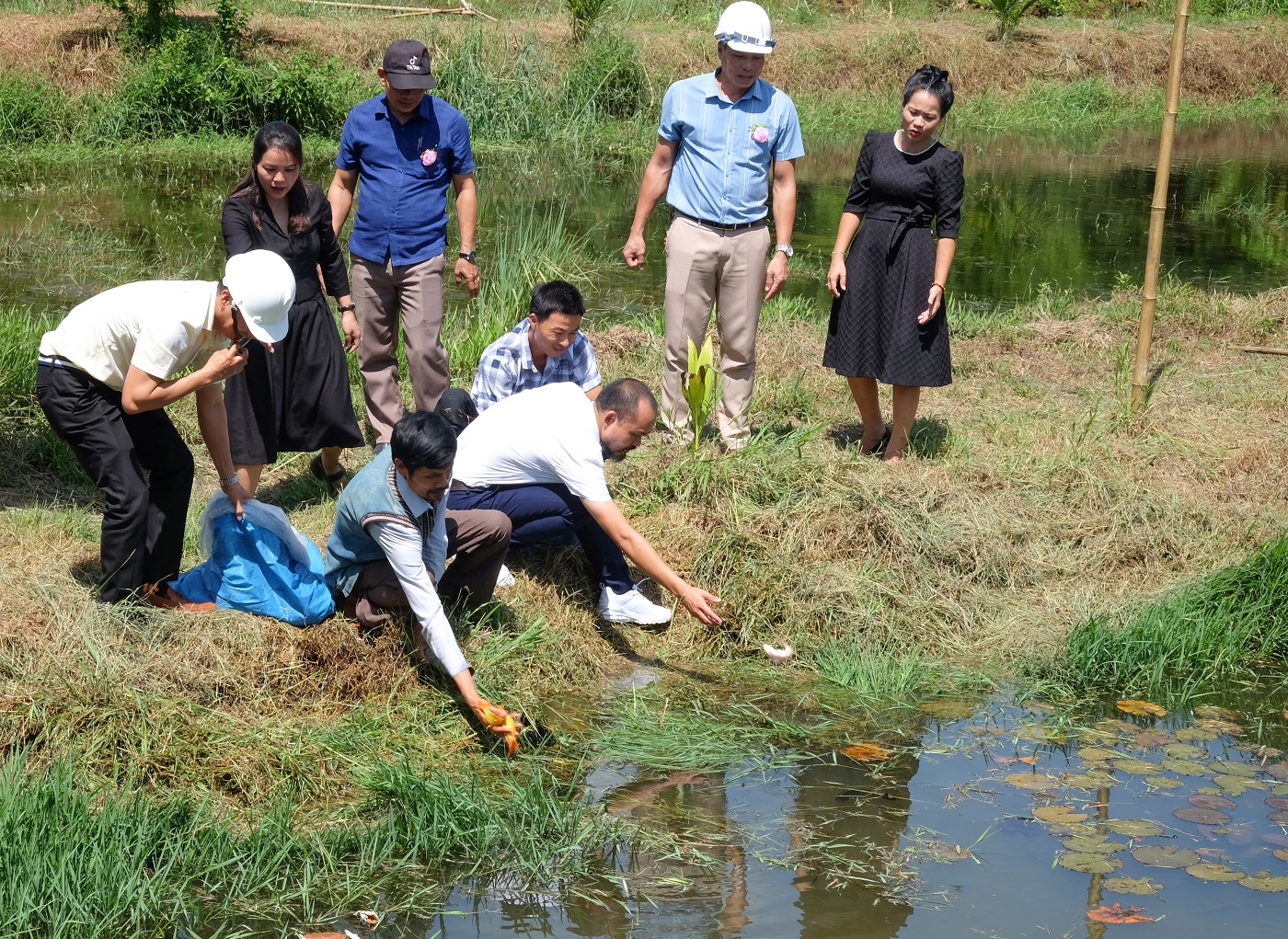 Các đại biểu thả cá xuống khe Rú Lịnh.